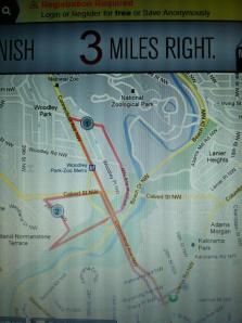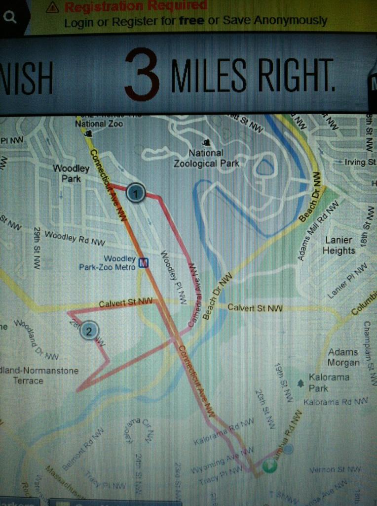 Due to traveling circumstances and meetings all day, Thursday Team Leader Tim Rahauser asked me to cover his post for today. But because of his stud status and the true dedication that he has to this organization, he woke up early and got a good run in right outside the Zoo in Washington, DC. He sent me this picture to show his route.