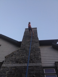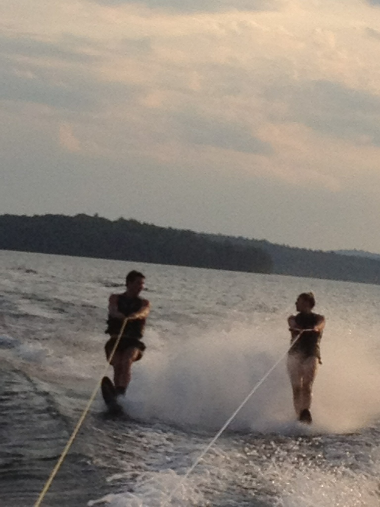 Yesterday we went to the lake itself and got in a little swimming. It is no secret that I absolutely love being in the water, so taking a dip in such a nice lake was a real treat for me. We found a semi-private little beach behind some empty summer homes and called the area our own. About a half mile or so into the lake there was a little island of rocks that we swam out to and climbed up on. From the top-most rock, the drop was about twenty feet or so, and I, being the daredevil that I am, felt the need to climb up as high as a could and jump. It was a real thrill, let me tell you. I musta done it 6 or 7 times before I ran out of energy. I attached a picture my buddy took of the island. I’m one of the people climbing to the top of the cliff there in the island closest to the bottom.