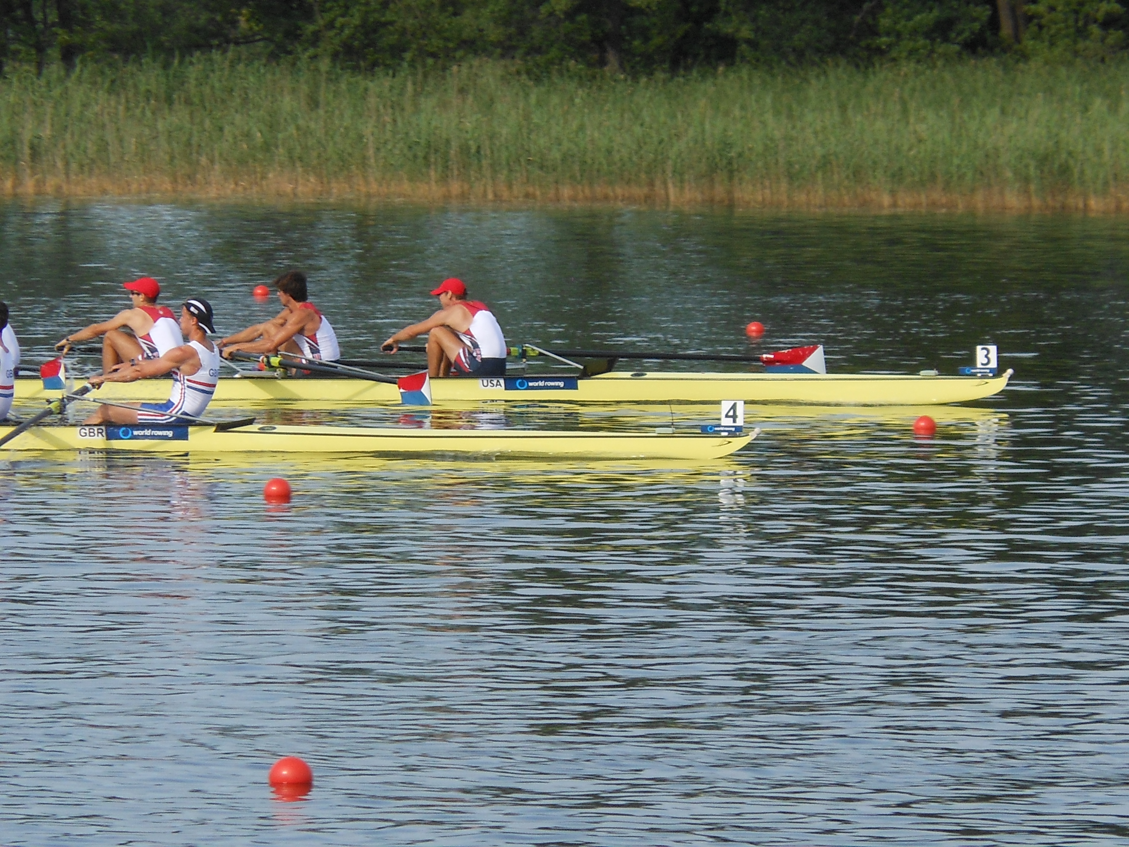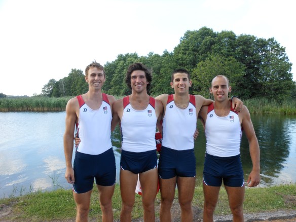 From left to right (and bow to stroke): Ted Baumgardner, US Naval Academy, Alex Karwoski, Cornell, Will Gillis, Princeton and finally Justin Jones, Northeastern. It was a tough Grand Final and we were disappointed with our result for the race but overall, we finished 4th at the World Championships.